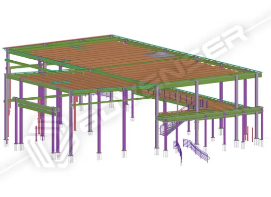 The South Jersey Yacht Sales project involved detailing of steel structures, including steel framing for the foundation, mezzanine floor, roof, and various miscellaneous elements such as stairs and railings, exterior ramp and stair railings. The structural system featured a combination of columns, beams, and joists with moment connections, while the stair railings incorporated cable rail designs. Advenser's scope of work encompassed creating a detailed 3D structural steel model in Tekla Structures, incorporating all primary and miscellaneous steel elements. The team extracted comprehensive drawings and reports to support the steel structure's construction. All models and drawings were developed in compliance with AISC, AWS, and OSHA standards, based on the provided structural and architectural design drawings. Deliverables included erection drawings, fabrication drawings, and single-part drawings. Along with Tekla generated reports such as ABM, BOM, NC files, KISS files, bolt lists, stud lists, and DXF files to streamline the construction process.