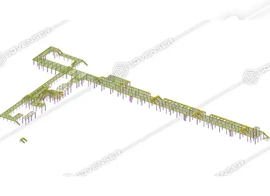 The material handling system comprises of four sorter platforms, four unloading platforms, three crossovers and one support grid platform. The overall project spans an area of 55,000 square feet. The task involved modeling all steel elements in Tekla Structures and generating drawings and reports.