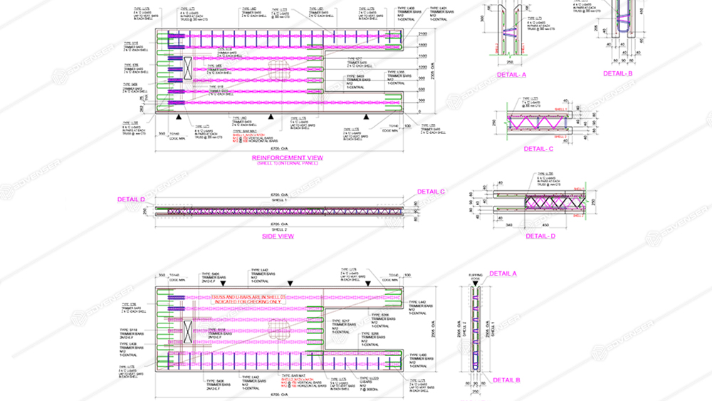 PRECAST DETAILING SAMPLES Explore our extensive portfolio of precast detailing samples with accurate reinforcement layouts, connection details, shop drawings, and erection plans. Precast Panel Detailing Check our samples. View Samples Contact us Now. Contact Us